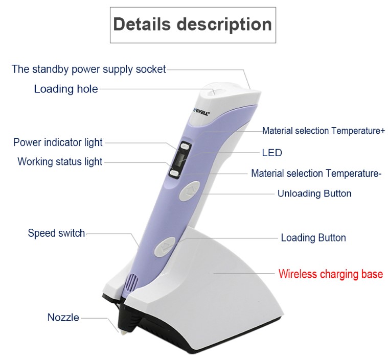 Myriwell RP-200B 3D printing pen provides the space for creativity, the ability to draw 3D pictures and models. The 3D pen can be used as: